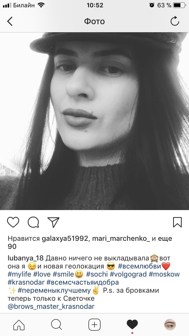 Мастер понравилась. Долговременную укладку бровей делала в первый раз, Светлана все рассказала и объяснила. В итоге работой довольна, форма бровей как я и хотела 😊